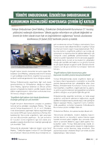rinde düzenlemeler yapılmıştır. Ayrıca engellilerle ilgili Ombudsman Malkoç, konuşmasına şöyle devam etti: