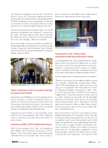 ederek, başarılar diledi. Cumhurbaşkanı Tatar: Ombudsmanlık,