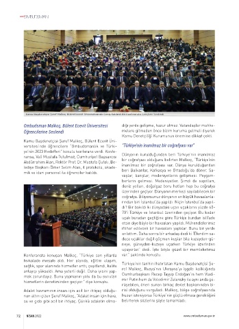 versitesi’nde öğrencilere “Ombudsmanlık ve Türki- “Türkiye’nin inanılmaz bir coğrafyası var”